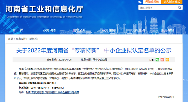 6月6日,河南省工業和信息化廳對2022年度“專精特新”中小企業擬認定名單進行了公示,南商農科通過嚴格審核位列其中