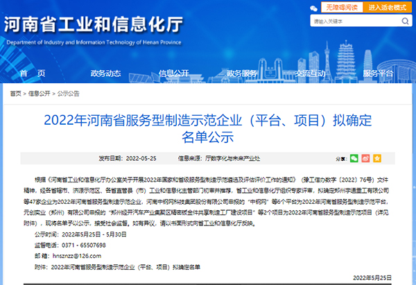 并且在5月25日,在河南省工業和信息化廳公布的服務型制造示范企業(平臺、項目)名單中,南商農科也是全省47家示范企業之一。